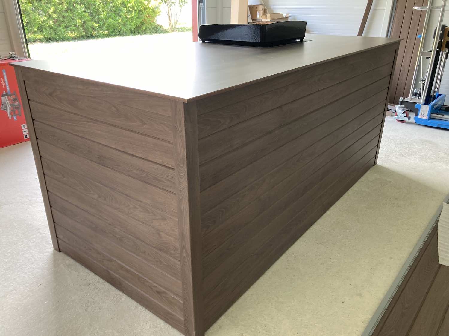 Beépíthető grillel, mosogatóval, hűtővel és tárolóval – minden egy helyen.